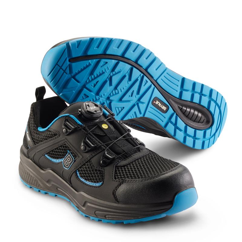 Flexible, lightweight and durable safety shoe with BOA® Fit System. Made of fast-drying and breathable microfiber/nubuck/textile/mesh. Featuring a highly slip resistant and shock absorbing PU/rubber outsole, providing excellent grip. The soft, breathable and shock absorbing inlay sole contributes to great comfort and reduces strain on the joints, feet, legs and back. The breathable lining has extra reinforcement in the heel. ESD-approved and PVC-free.