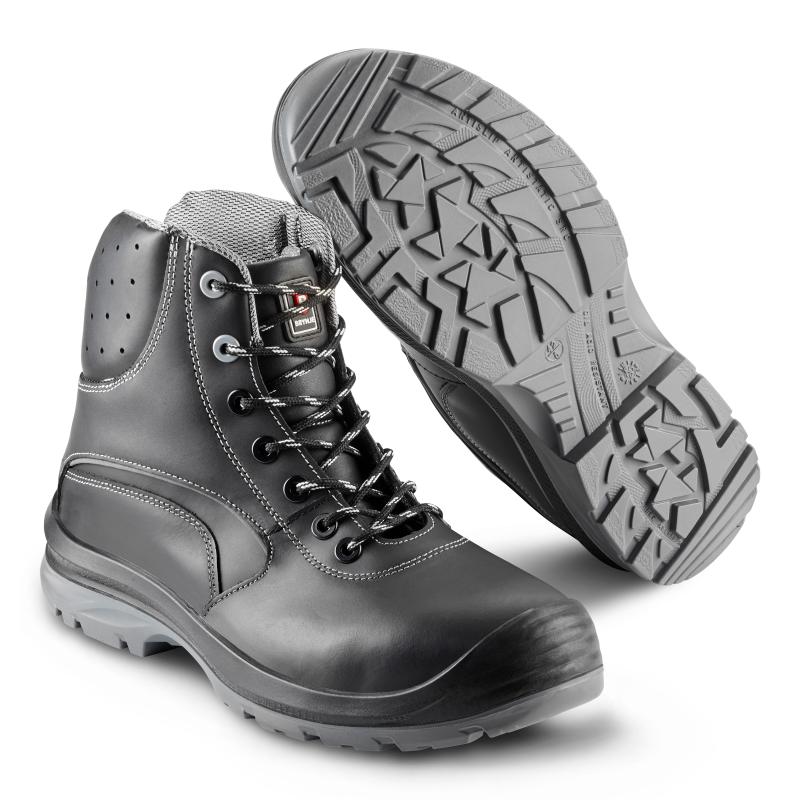 Lightweight and durable safety low boot. Inlay sole of antibacterial material with extra shock absorption in the heel and forefoot. Upper in breathable, water resistant and durable full grain leather. Wide fit. With ProNose for extra durability. Metal free and with reflective details.