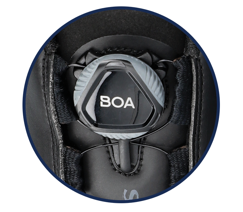 An innovative system that tightens and loosens the shoe in an instant. Gives the shoe a precise fit.